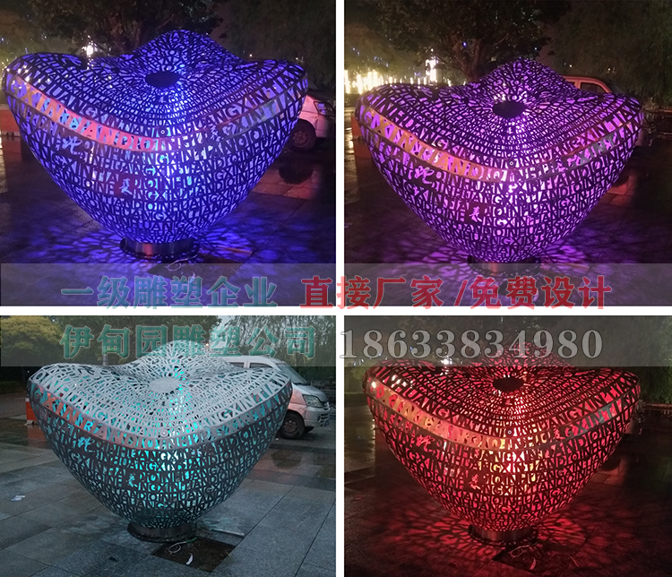漫想雕塑一大特點(diǎn)是加入了“彩虹燈光”效果,七種顏色自由變換,程序開關(guān)認(rèn)為控制變色,增加人與雕塑的互動(dòng)樂趣。