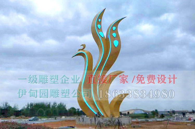 不銹鋼發(fā)光鳳凰雕塑,安裝于貴州省某機(jī)場(chǎng),雕塑總高19.58米,寓意該機(jī)場(chǎng)1958年建造。不銹鋼發(fā)光鳳凰雕塑安裝流程:確認(rèn)設(shè)計(jì)圖→制作雕塑小樣→制作雕塑骨架→裁料鍛造→組裝焊接→打磨拋光→修整噴漆→安裝燈帶→物流運(yùn)輸→現(xiàn)場(chǎng)組裝→細(xì)節(jié)修整。