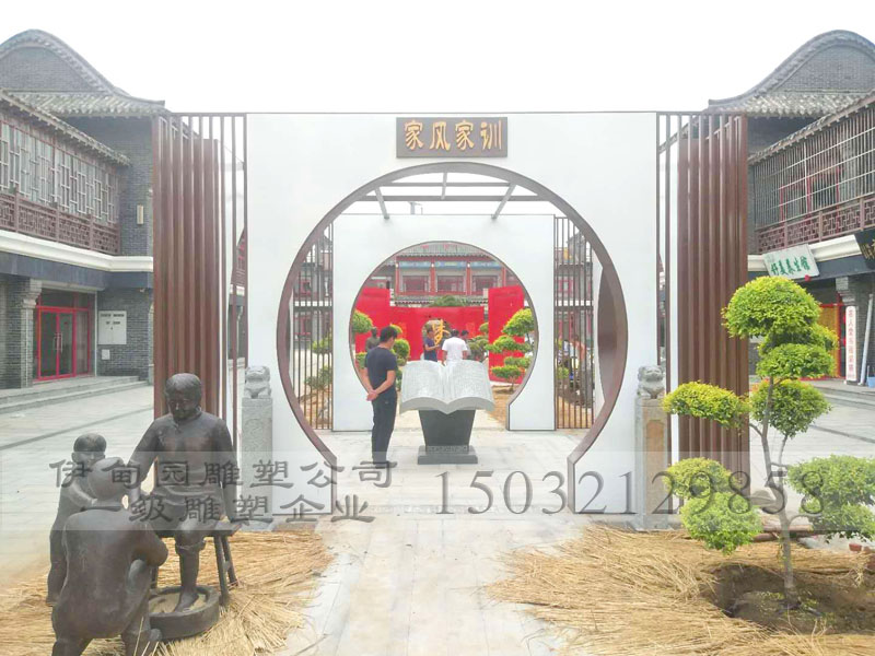 山東省青島市歷史文化街雕塑系列從設(shè)計(jì)定稿、雕塑制作、最終安裝完成共歷時(shí)3個(gè)月,雕塑主題包含:金榜題名篇、永結(jié)同心篇、喜結(jié)良緣篇、長命百歲篇、家風(fēng)家訓(xùn)篇、家國情懷篇、中國夢篇,雕塑產(chǎn)品包含:當(dāng)?shù)孛私榻B、不銹鋼喜字雕塑、娶親鑄銅雕塑、鑄銅讀書雕塑、長命百歲鎖雕塑、天倫之樂雕塑、童趣雕塑、孝道雕塑(洗腳雕塑)、竹簡雕塑、拱門雕塑、書雕塑、中國夢雕塑、鑄銅大象雕塑。