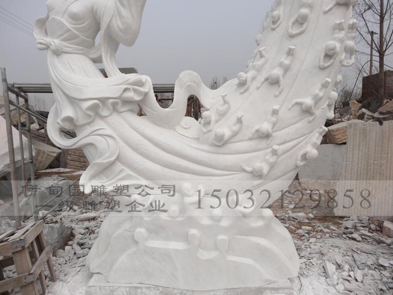 雕塑細(xì)膩的刻劃出女媧的面部細(xì)節(jié)、衣服紋理與質(zhì)感,不管是水紋與祥云細(xì)節(jié),或是蜂擁而出的小孩都完完整整的呈現(xiàn)出來。而且雕塑是分塊雕刻制作,更重要的是后期拼接組合的雕塑作品細(xì)節(jié)更要細(xì)膩,完全不能因此而粗心大意。