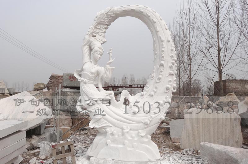 女媧摶土造人雕塑采用北京房山一級(jí)漢白玉經(jīng)工藝師傅的精心雕刻而成,女媧雕塑制作流程:手繪圖紙→石材開荒→分塊編號(hào)→精細(xì)雕刻→拼接組合→填縫處理→精細(xì)打磨。在女媧雕塑的設(shè)計(jì)上,主要突出了佛像面部表情安詳、慈悲的法相,以俏色的手法表現(xiàn)烘托出圣潔超俗的藝術(shù)氛圍。