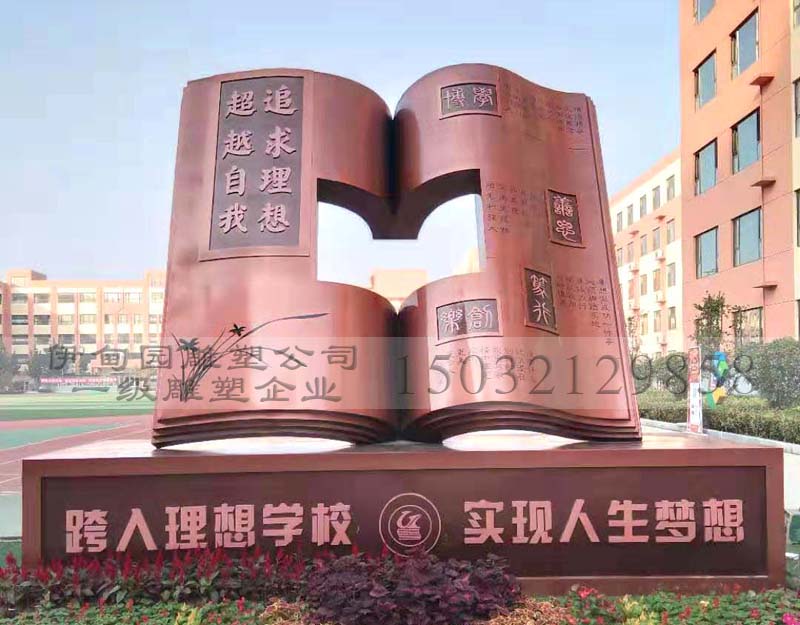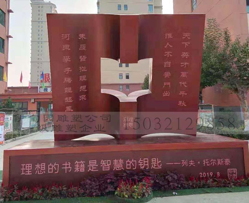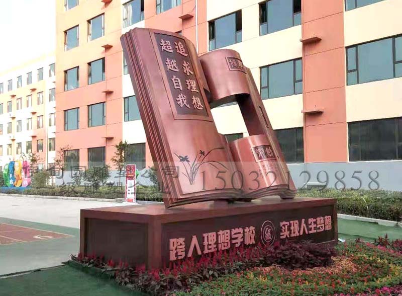 不銹鋼書雕塑作為學(xué)校主題雕塑,得到學(xué)校領(lǐng)導(dǎo)一致認(rèn)可。校園里邊的書雕塑象征力耕不息、勇于開拓創(chuàng)新、自強(qiáng)不息精神等寓意,在濃厚的文化氣息中無(wú)疑不是錦上添花之筆。