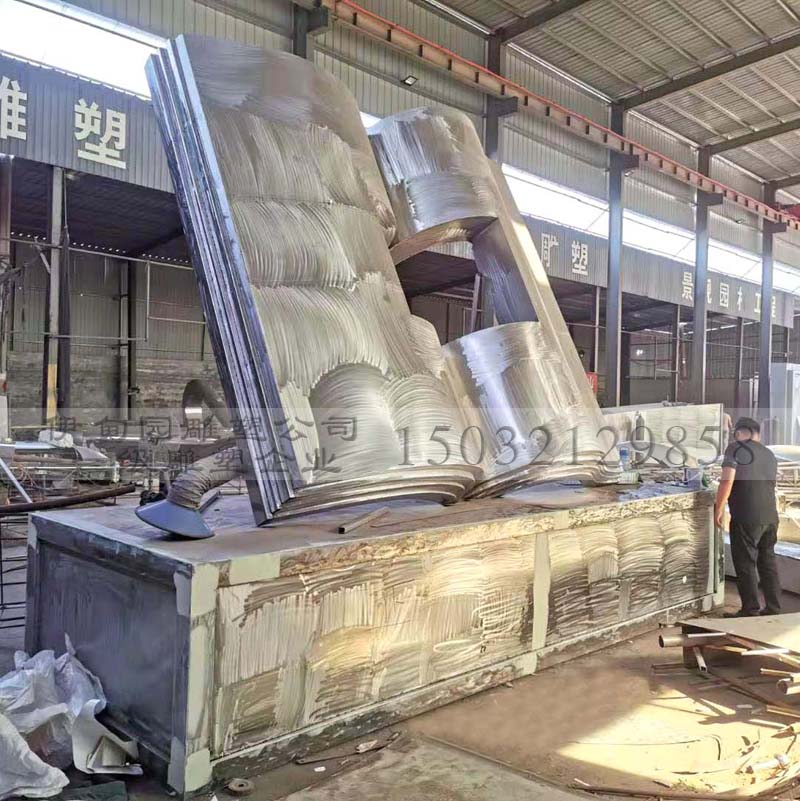 不銹鋼書雕塑,高3米 寬3.6米,安裝于山西省某學(xué)校。書雕塑正面及背面雕刻辦學(xué)理念及特色,方形底座四周雕刻名人警句。