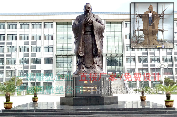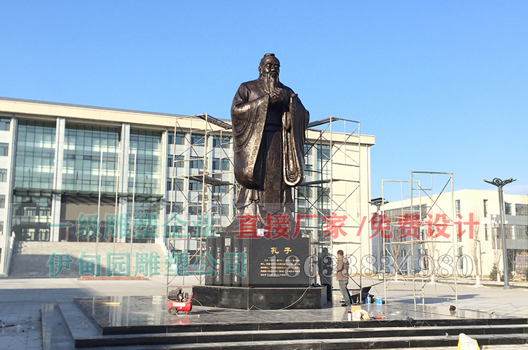 高8.8米孔子銅像雕塑安裝于吉林省某校園內(nèi),孔子銅像制作流程:確認(rèn)雕塑圖案一塑制泥塑模型一翻制模具(硅膠模具)一根據(jù)雕塑模型采取精鑄一翻制一烤制型殼脫蠟一燒制型殼一澆鑄銅水一待銅水冷卻后打碎型殼完成銅品制作一著色、防腐處理一客戶驗收。