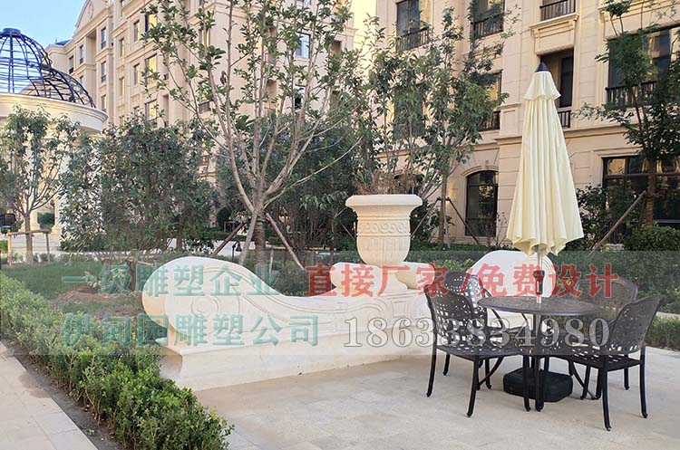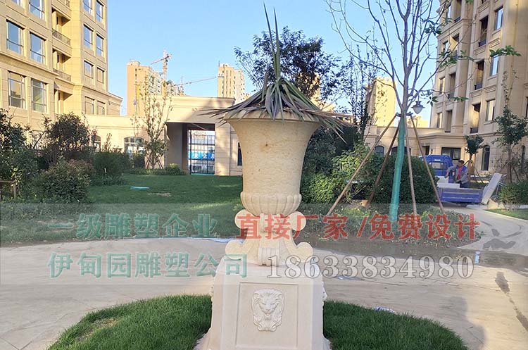 埃及米黃石雕花盆,安裝于山東省某歐式住宅區(qū)。埃及米黃材質(zhì)雕塑,精致典雅,凸顯小區(qū)濃濃的歐式風!