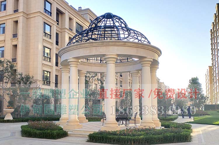 直徑8米歐式埃及米黃石雕涼亭,安裝于山東省某住宅區(qū)。埃及米黃材質(zhì)涼亭,精致典雅,凸顯小區(qū)濃濃的歐式風(fēng)!