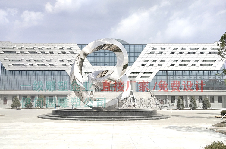 4、雕塑整體環(huán)繞扭曲造型,代表學校與社會的凝聚力,凝聚力來源于對現(xiàn)代科技文明的自信。