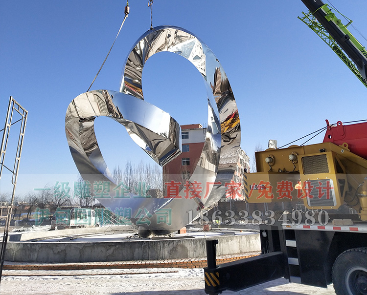 高11米雕塑從設計→訂制小樣→主體制作→物流運輸→現(xiàn)場安裝→細節(jié)處理,共歷時3個月。不銹鋼雕塑主骨架采用219*6mm鍍鋅鋼管制作,防腐性能好、牢固穩(wěn)定!所有承重骨架采用雙面滿焊,整體骨架完成后用防銹漆滿涂三遍。雕塑外輪廓為抽象e造型,外部裝飾板采用304#鋼板,緊貼著骨架外形進行拼裝,焊接。